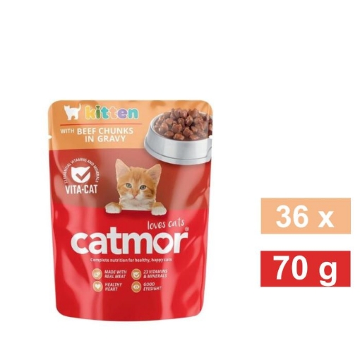 CATMOR KITTEN WET FOOD POUCH GRAVY - BEEF 36x70g